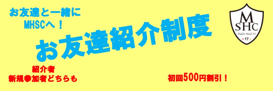 スクール生や1度参加したことがある一般生の紹介で初めて参加した場合、紹介者、新規参加者共に割引!