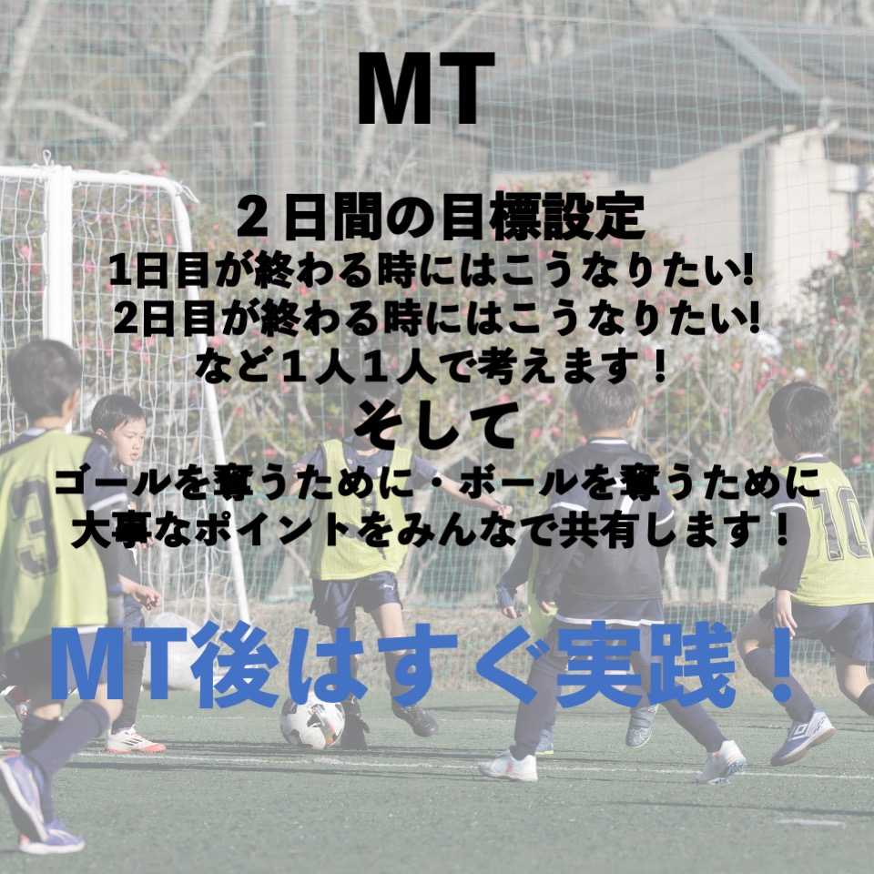 ゴールを奪うため、ボールを奪うためのポイントをみんなで共有し、2日間の目標を1人1人で考えます。